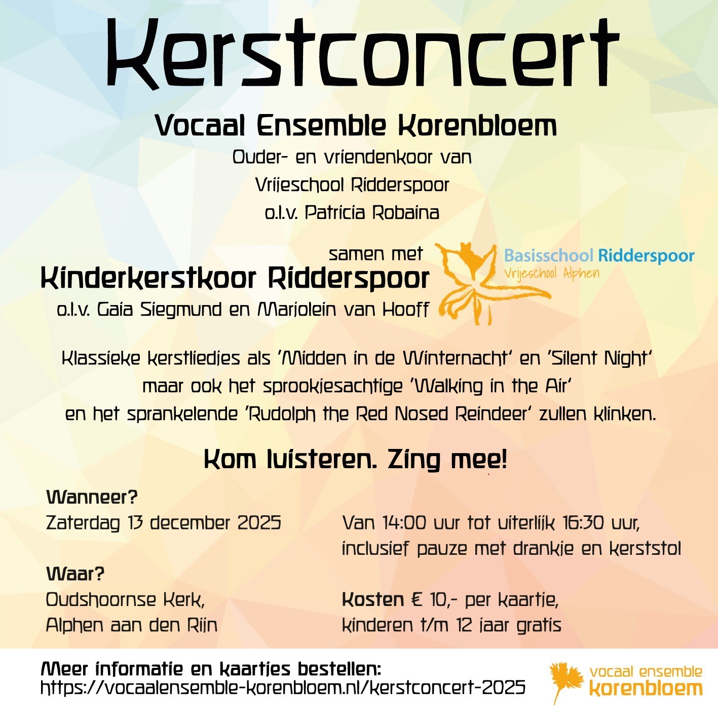 Kerstconcert op zaterdag 13 december 2025 | Vrije school Ridderspoor